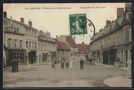 AK Decize, Place de la République avec passants et bâtiments historiques