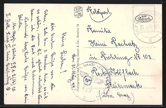 alte Ansichtskarte, gelaufen 1944 als Feldpost, Oberflächenschaden, sonst guter Zustand