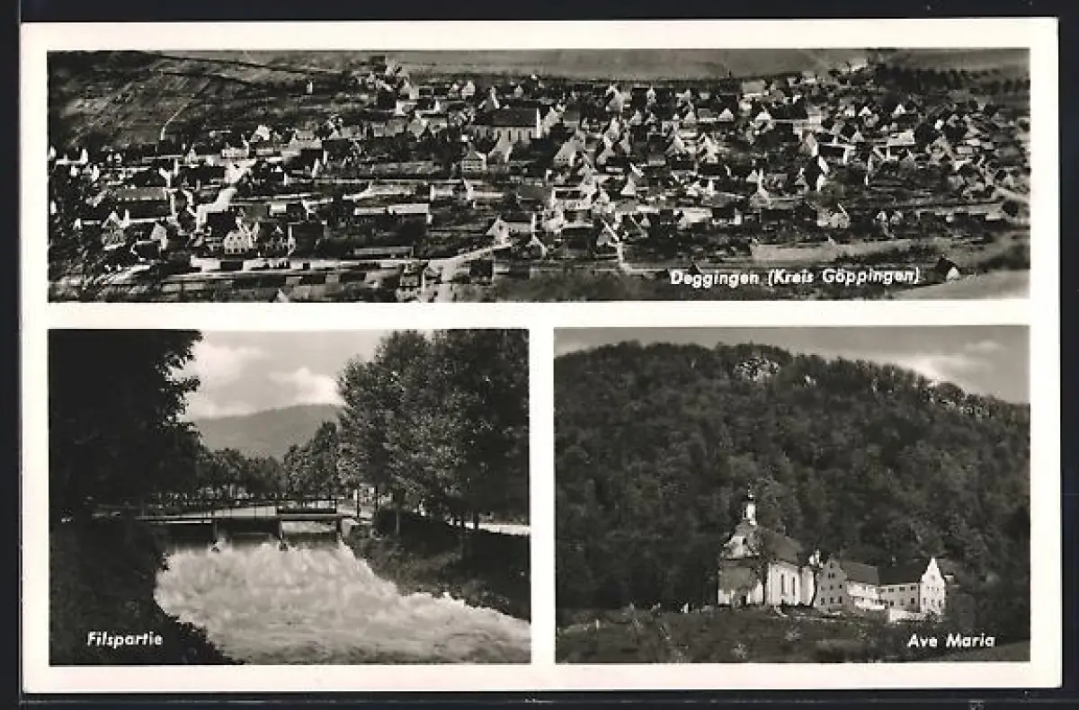 AK Deggingen /Göppingen, Ortsansicht, Filspartie, Ave Maria
