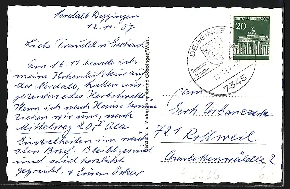alte Ansichtskarte, gelaufen 1967, guter Zustand