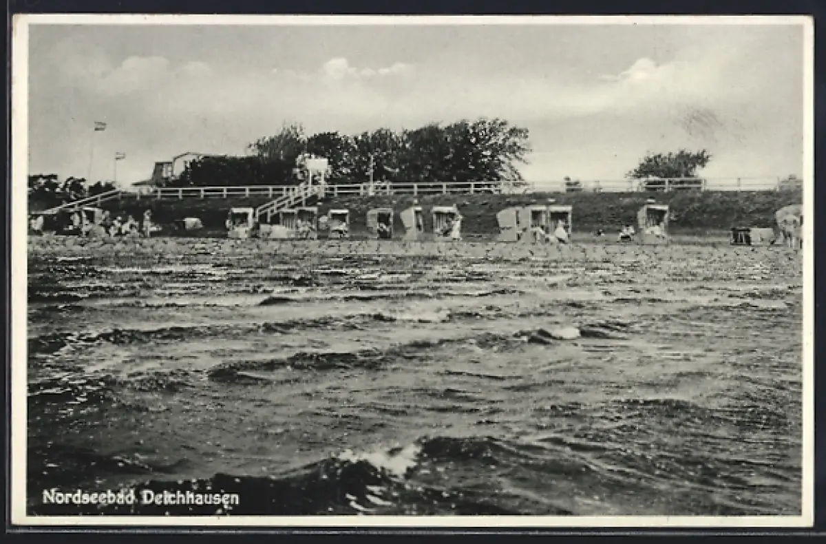 AK Deichhausen / Nordseebad, Strand, Strandkörbe, Deich