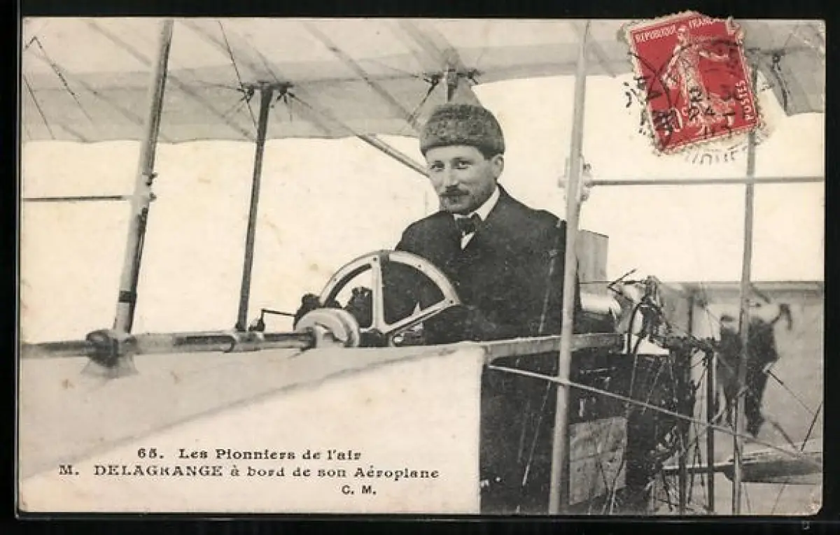 AK Delagrange à bord de son Aéroplane, Flugzeug