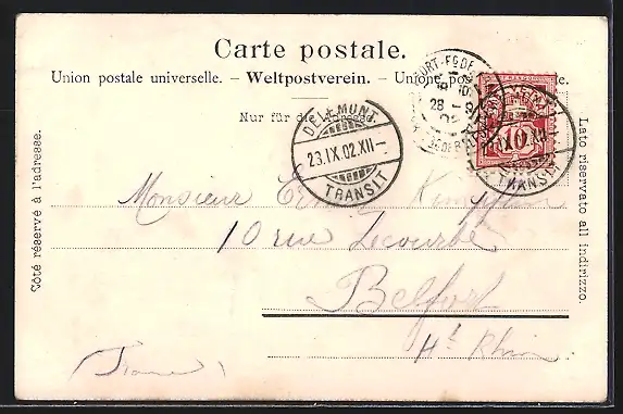 gelaufen 1902, Eckknick oben re., Stempelspur, guter Zustand