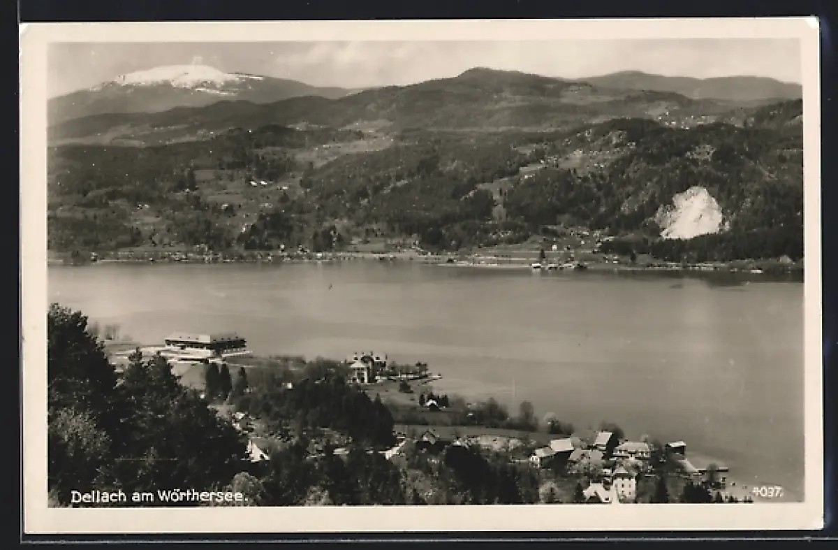 AK Dellach am Wörthersee, Teilansicht mit Bergen