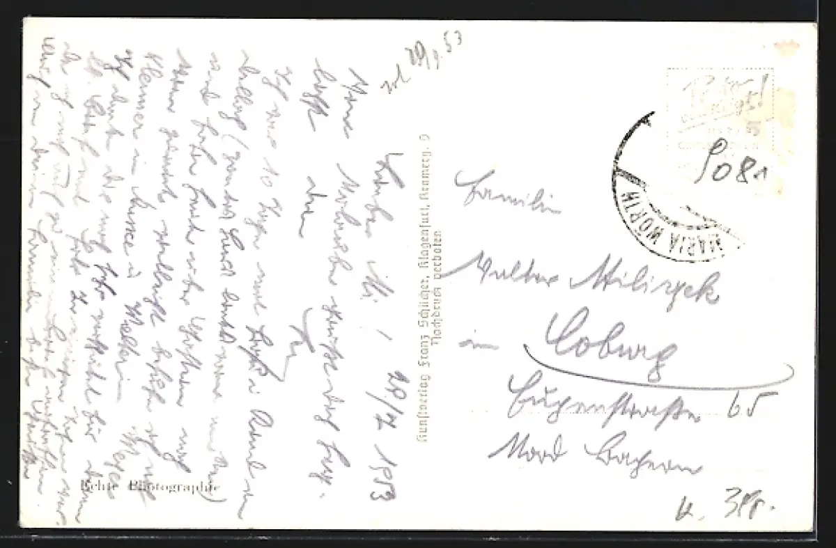alte Ansichtskarte, gelaufen 1953, Briefmarke entfernt, guter Zustand