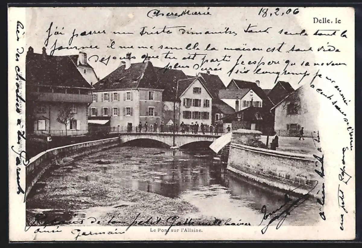 AK Delle, Le Pont sur l`Allaine avec vue sur les maisons environnantes