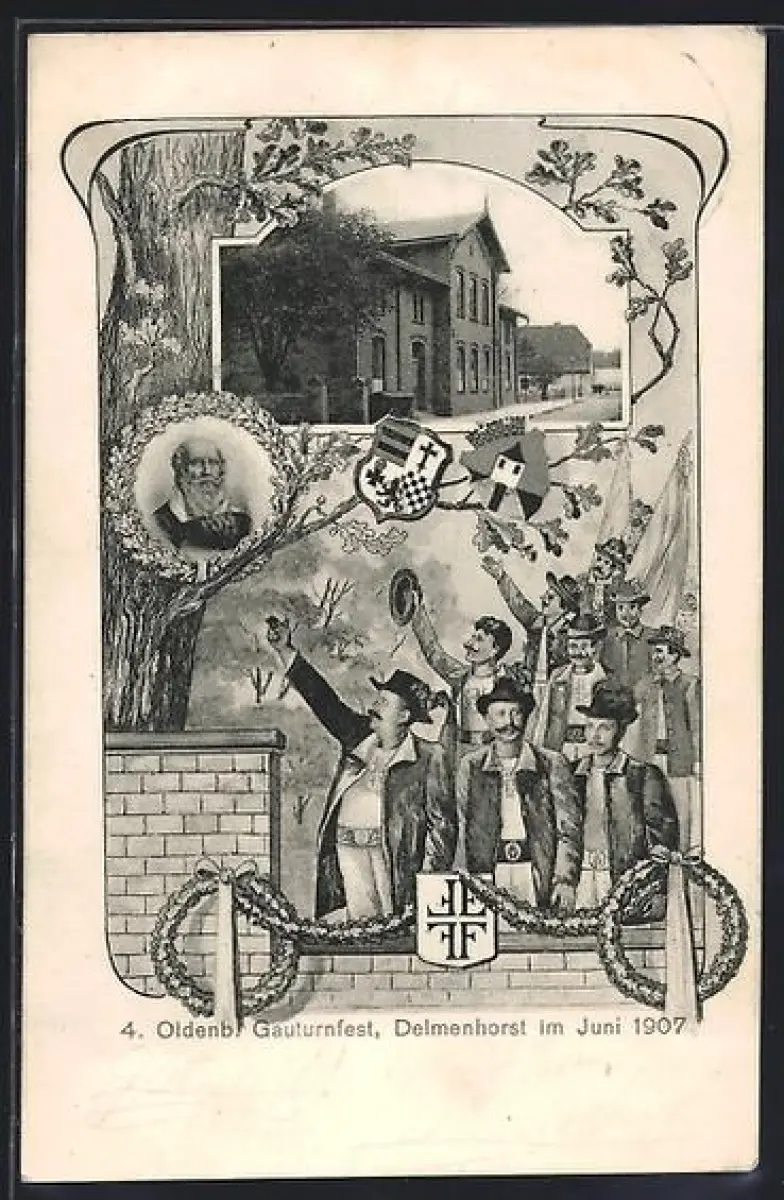 AK Delmenhorst, 4. Oldeb. Gauturnfest 1907, Turner Ehren den Turnvater
