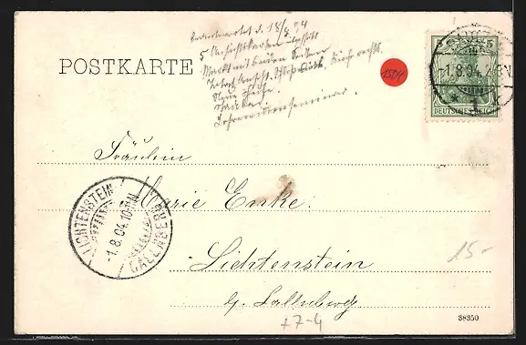 gelaufen 1904, rückseitig Klebe- und Papierreste, guter Zustand