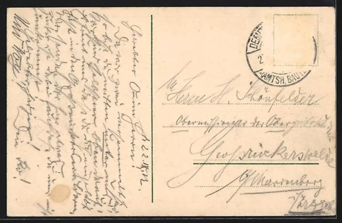 alte Ansichtskarte, gelaufen, Briefmarke entfernt, guter Zustand
