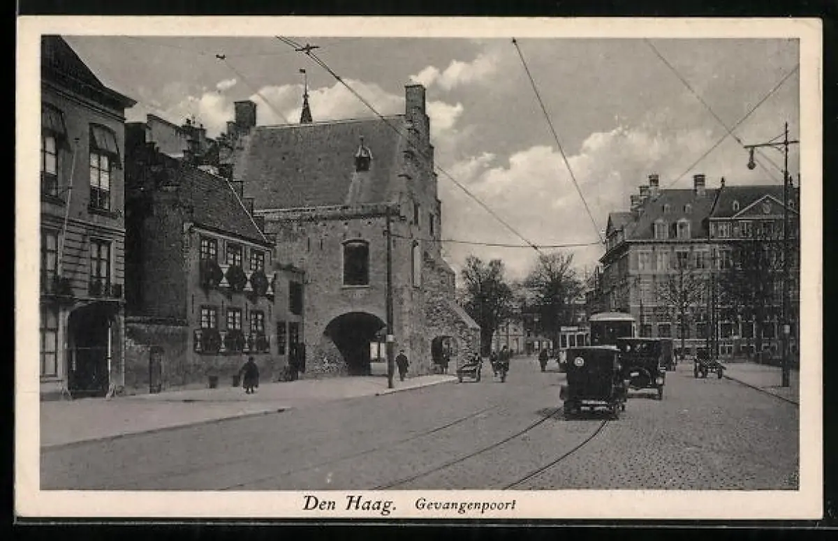 AK Den Haag, Gevangenpoort, Strassenbahn
