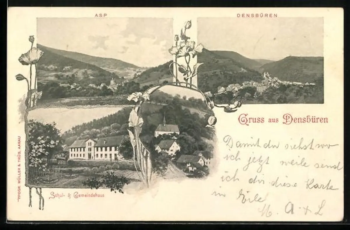 AK Densbüren, Schul- & Gemeindehaus, Asp, Ortsansicht