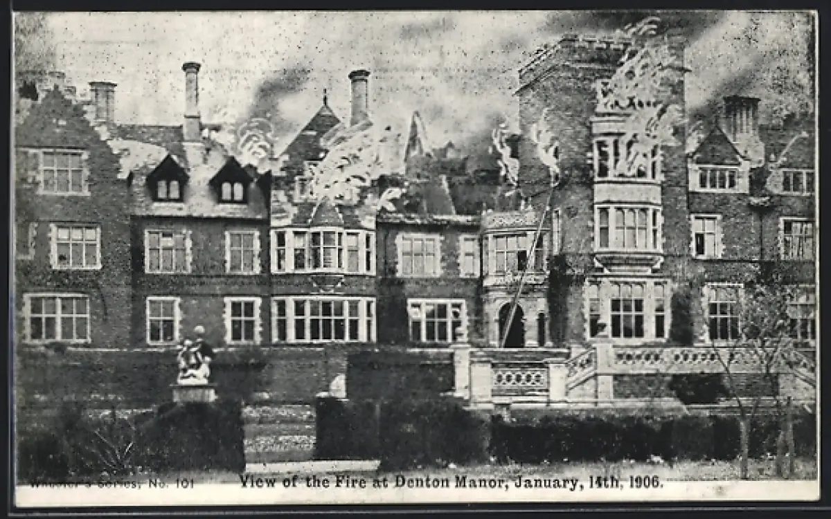 AK Denton, View of the Fire at Denton Manor 1906, Brand