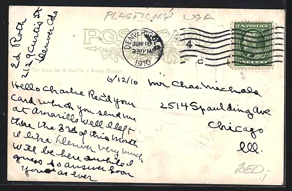 gelaufen 1910, Eckknicke oben und re. unten, guter Zustand