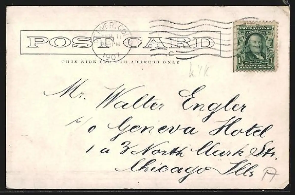 alte Ansichtskarte, gelaufen 1907, Stempelspur, guter Zustand