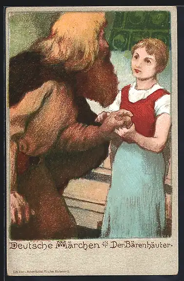 AK Der Bärenhäuter - Mädchen empfängt den Bärenhäuter in ihrem Haus