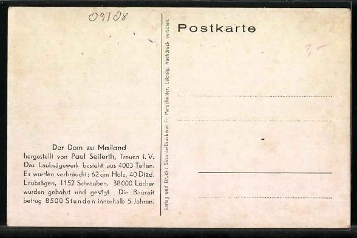 AK Der Dom zu Mailand hergestellt von Paul Seiferth