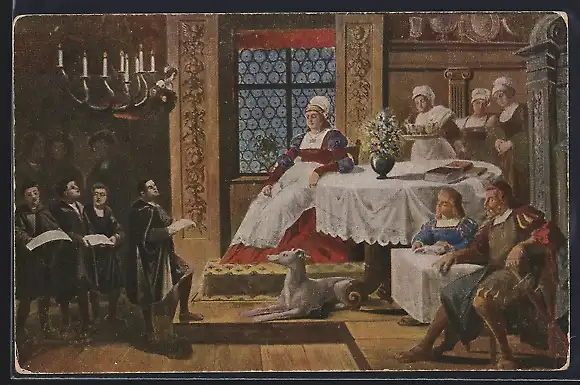 AK Der Kurrendeschüler Luther singt vor Frau Colta