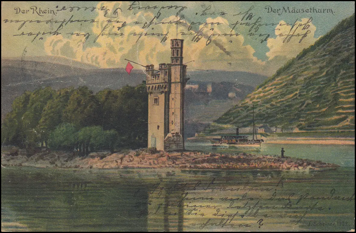 AK Der Mäuseturm im Rhein, BONN 24.10.1903 mit MiF Germania 68-70 nach Antwerpen