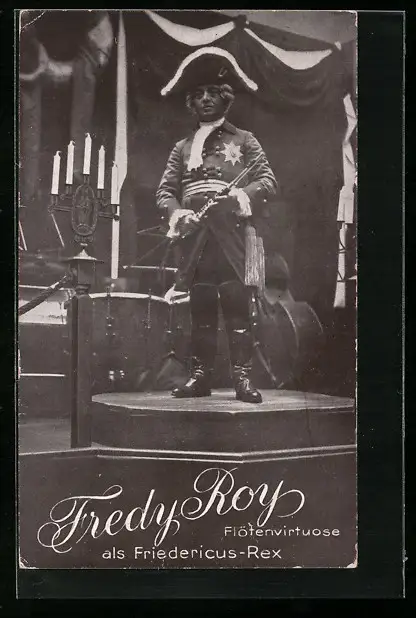 AK Der Musiker Freddy Roy, als Fredericus Rex, Flötenvirtuose