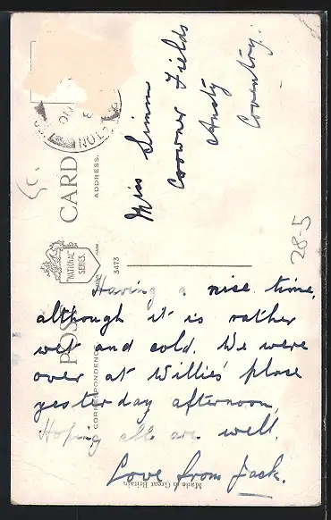 alte Ansichtskarte, gelaufen, Briefmarke entfernt, rückseitig Oberflächenschaden, Eckknicke links u. rechts, guter Zustand