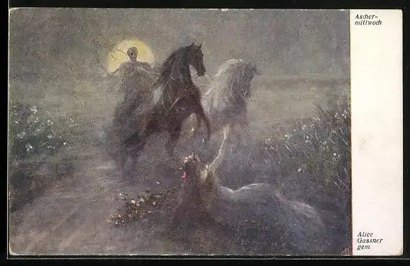 AK Der Tod kommt auf dem Pferd und nimmt die junge Dame mit
