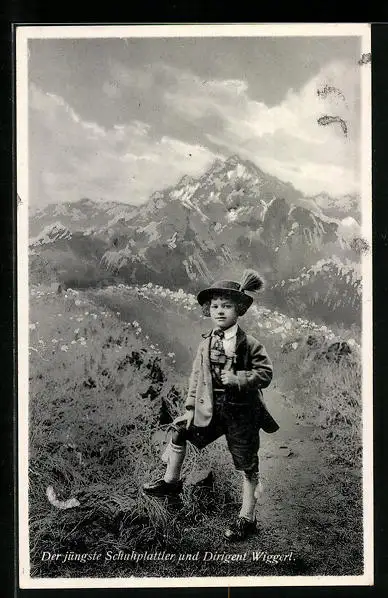 AK Der jüngste Schuhplattler und Dirigent Wiggerl in Tracht, Volkstanz