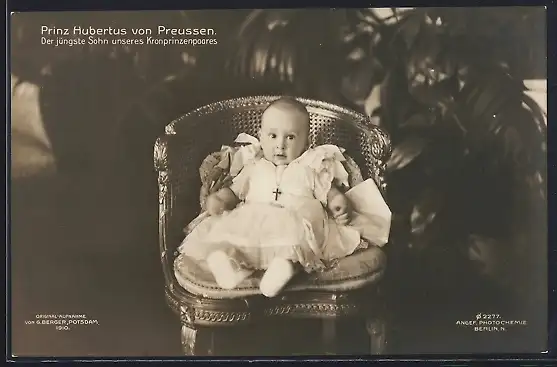 AK Der kleine Prinz Hubertus auf einem Stuhl