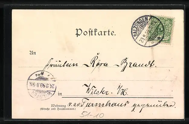 alte Ansichtskarte, gelaufen 1899, guter Zustand