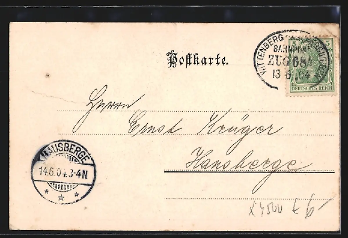alte Ansichtskarte, gelaufen 1904, Eckknick oben links, Stecknadelloch oben rechts