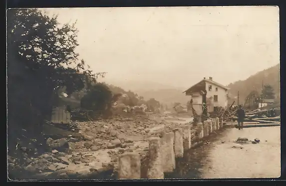 AK Dessendorf, Dammbruchkatastrophe 1916, Dessepartie mit halb zerstörtem Haus