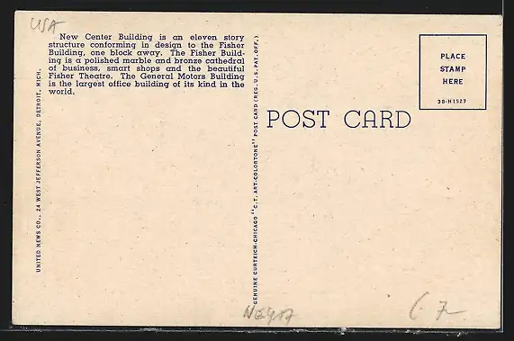 Ein Angebot in Ansichtskarten Michigan - 1.053 weitere Angebote in dieser Kategorie