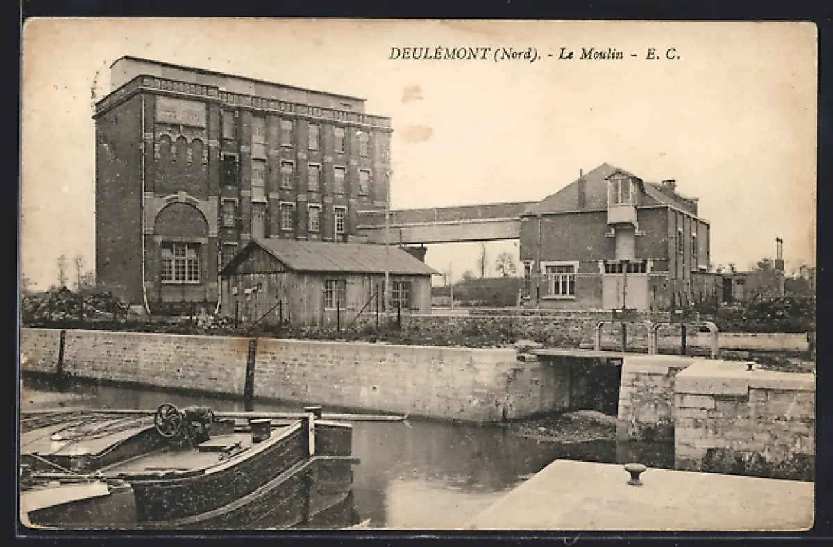 AK Deulémont, Le Moulin et la péniche sur le canal