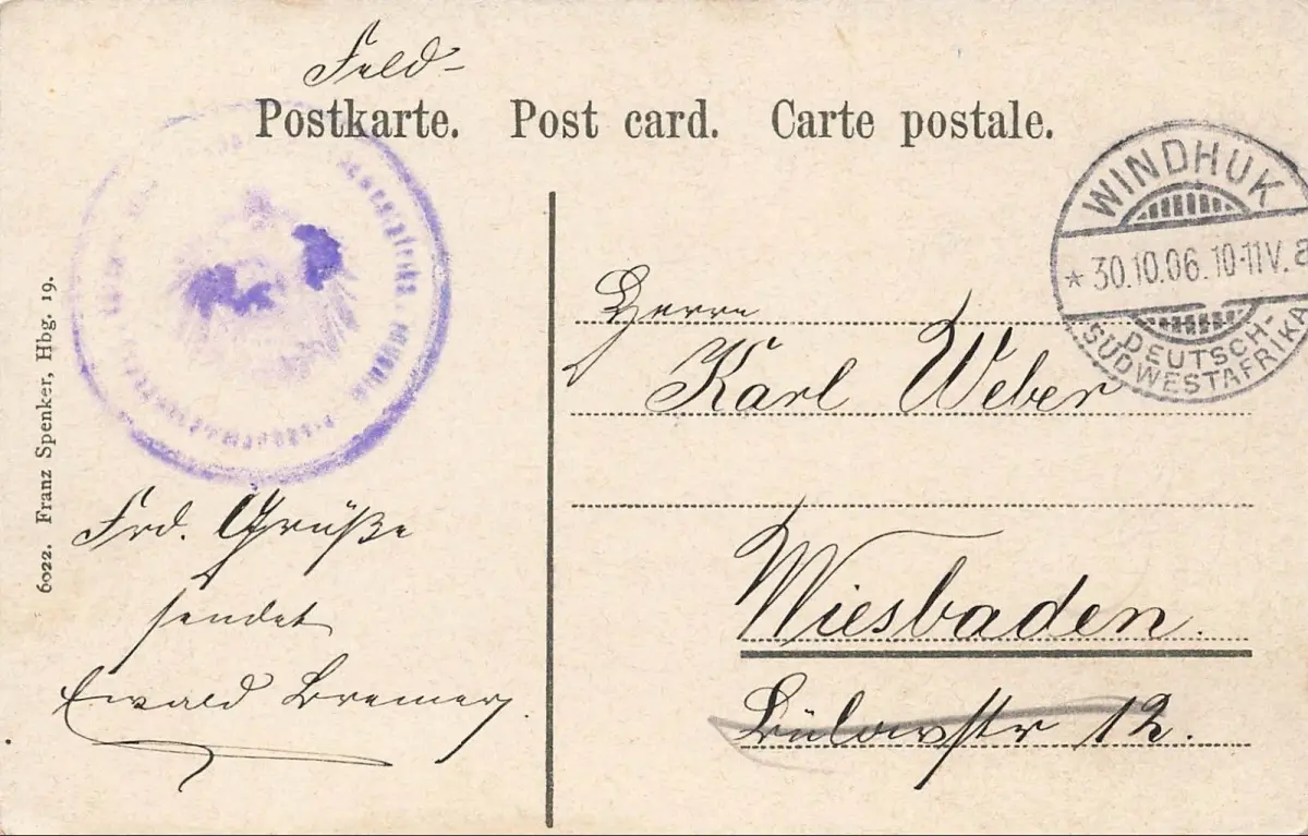 AK Deutsch-Südwest-Afrika DSWA Eingeborenen Viertel Feldpost Windhuk 1906