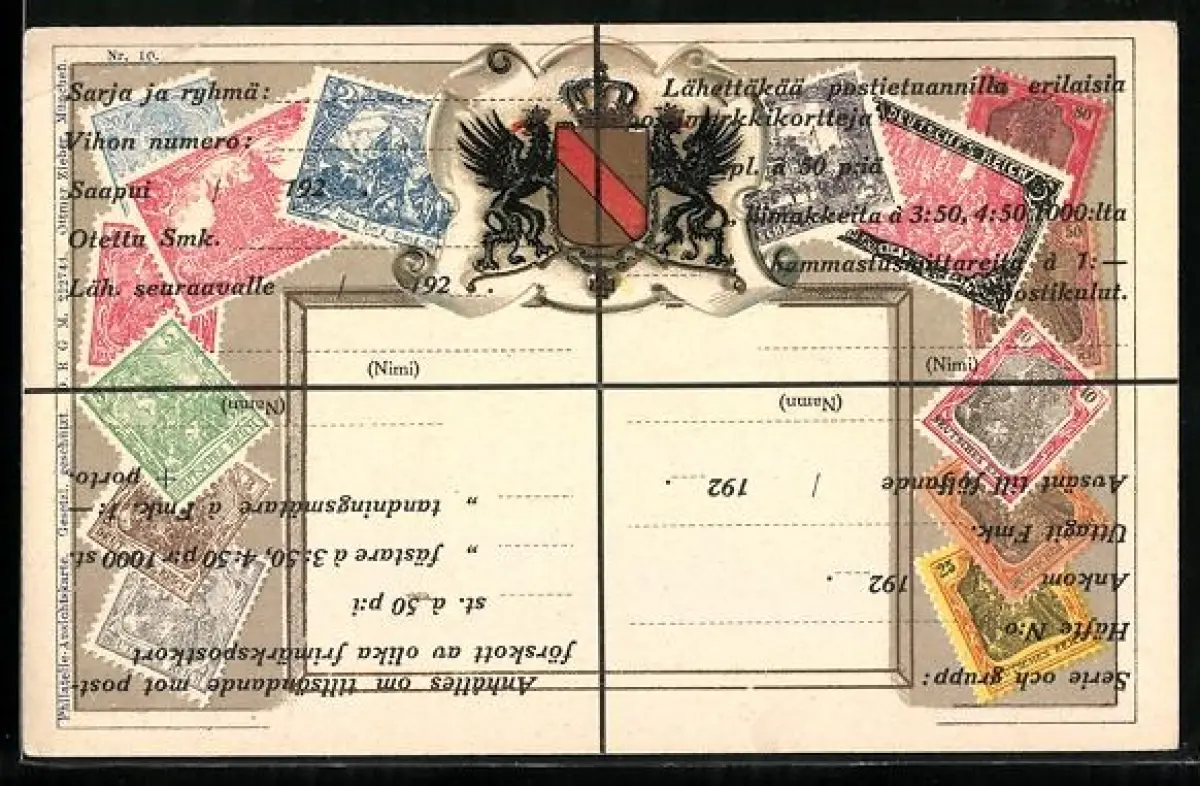 AK Deutsche Briefmarken mit Wappen