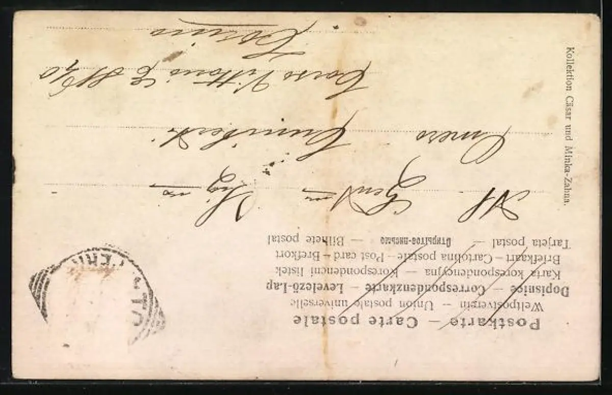alte Ansichtskarte, gelaufen, Briefmarke entfernt, Abriebspur oben re., guter Zustand