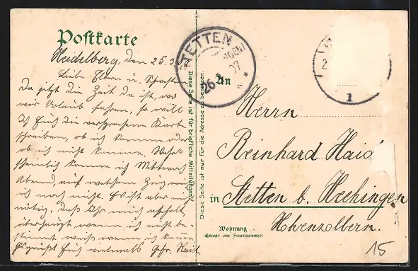 alte Ansichtskarte, gelaufen 1907, Briefmarke entfernt, rückseitig Oberflächenschaden, guter Zustand