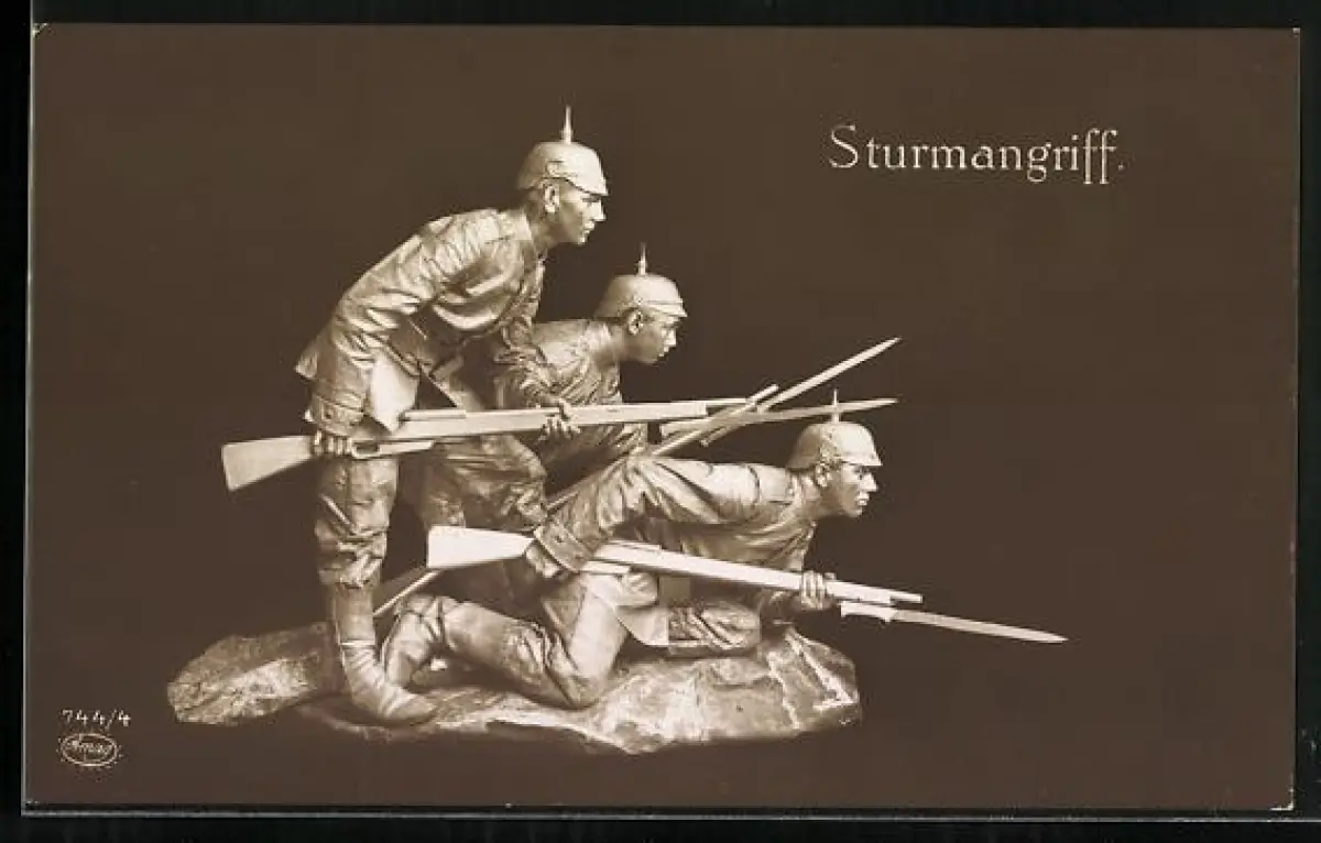 AK Deutsche Soldaten mit Waffen beim Sturmangriff