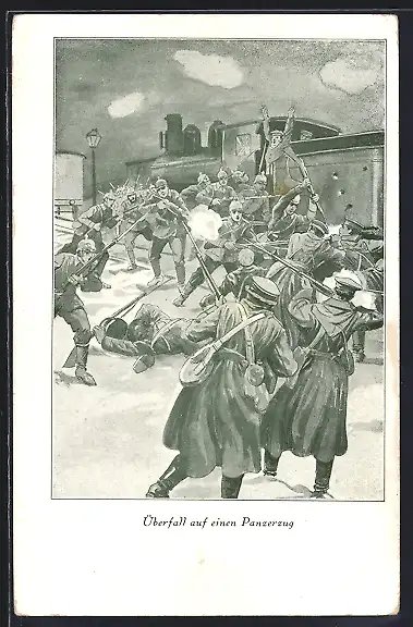 AK Deutsche Soldaten verteidigen einen Überfall auf einen Panzerzug