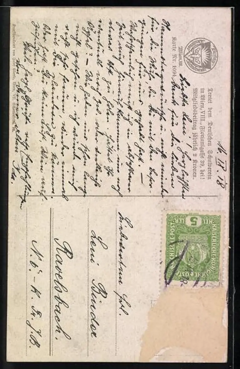 alte Ansichtskarte, gelaufen 1918, Briefmarke entfernt, rückseitig Oberflächenschaden, guter Zustand