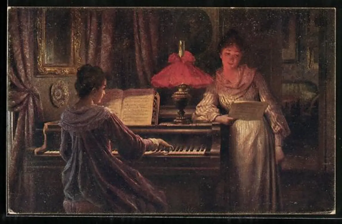 AK Deutscher Schulverein NR. 1191: Musikerin bei einer Klavierstunde