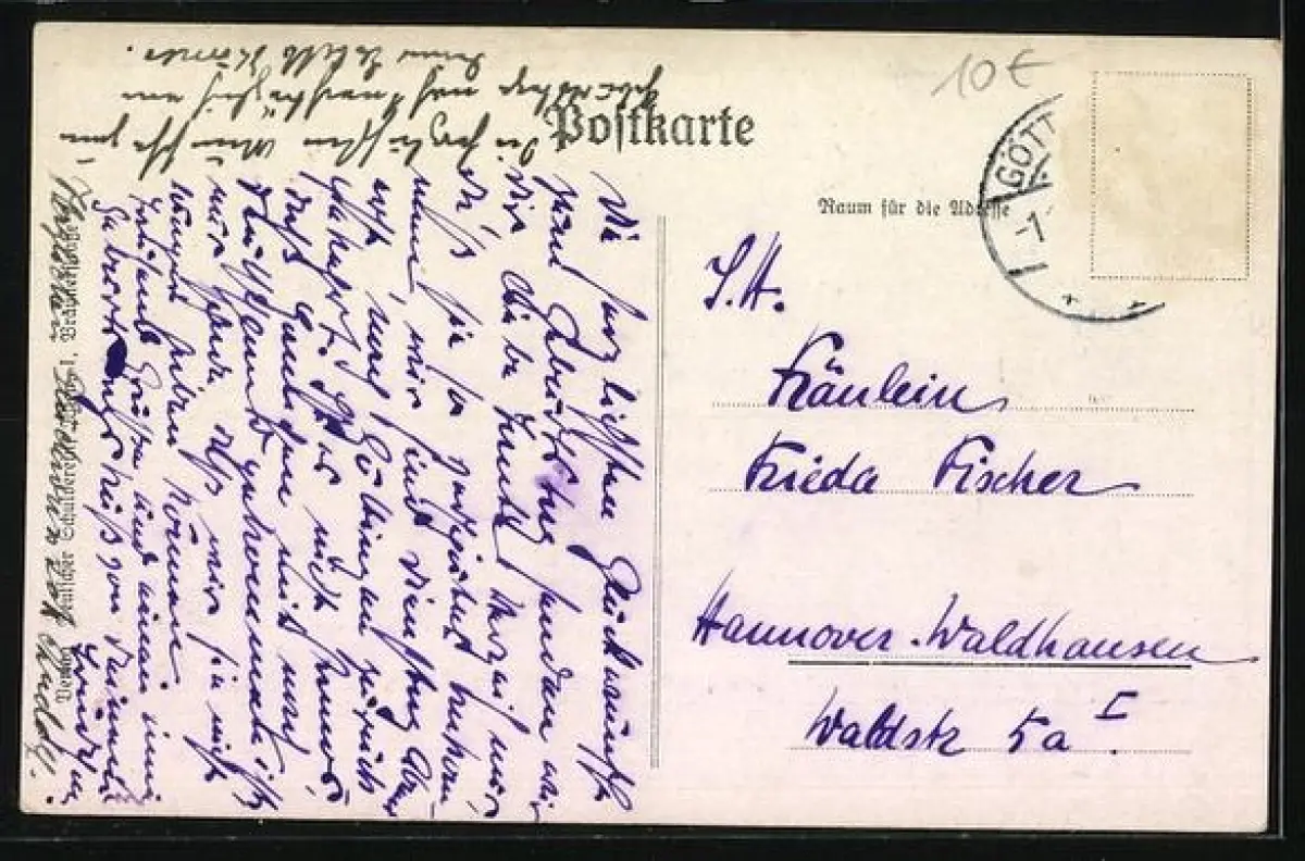 alte Ansichtskarte, gelaufen, Briefmarke entfernt, guter Zustand