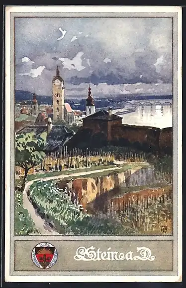 AK Deutscher Schulverein NR 177: Stein a. D., Partie am Ortsrand mit Kirche