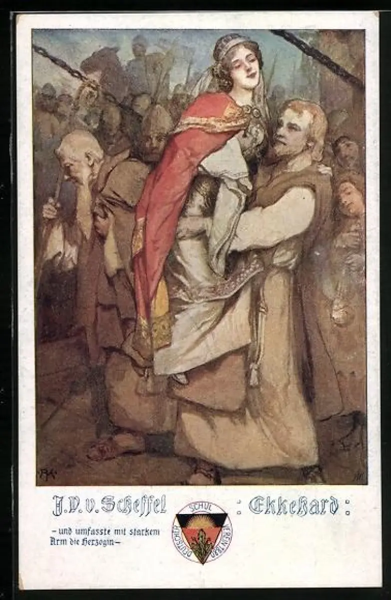 AK Deutscher Schulverein NR: 488, Scheffel Ekkehard, und umfasste mit starkem Arm die Herzogin