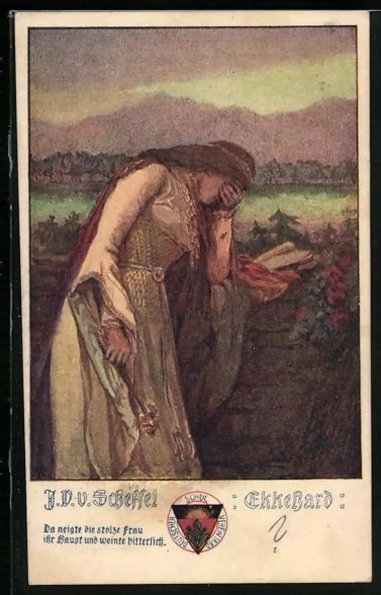 AK Deutscher Schulverein NR 490: J.V. von Scheffel, Ekkehard: Da neigte die stolze Frau ihr Haupt und weinte