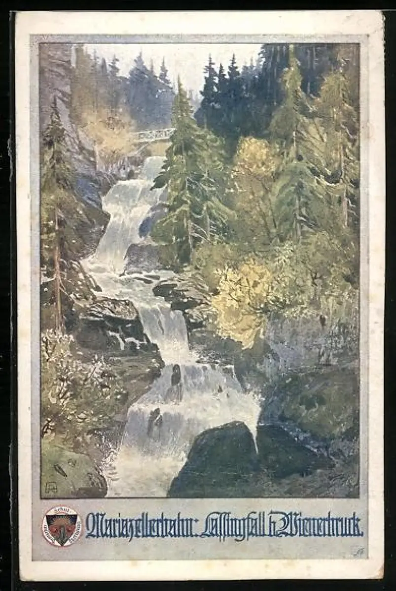 AK Deutscher Schulverein NR. 717: Mariazellerbahn, Lassingfall bei Wienerbruck, Blick auf den Wasserfall