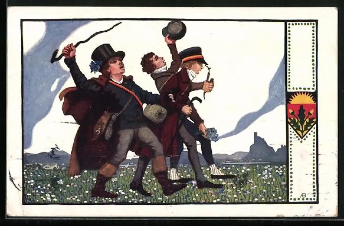 AK Deutscher Schulverein NR.147: Es zogen drei Burschen, wohl über den Rhein