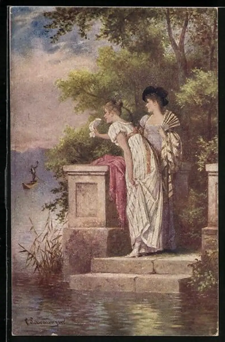 AK Deutscher Schulverein Nr. 1193: Frauen grüssen Mann auf Boot