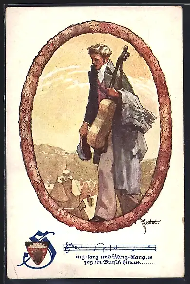 AK Deutscher Schulverein Nr. 1336: Junger Mann mit Gitarre