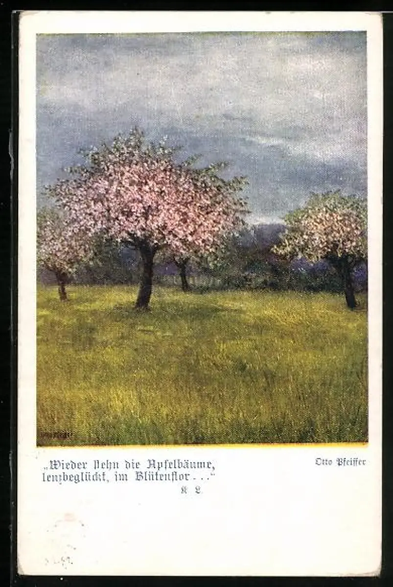 AK Deutscher Schulverein Nr. 1384: Blühende Apfelbäume auf der Wiese