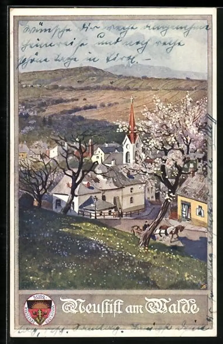 AK Deutscher Schulverein Nr. 327: Neustift am Walde, Ortspartie mit Kirche